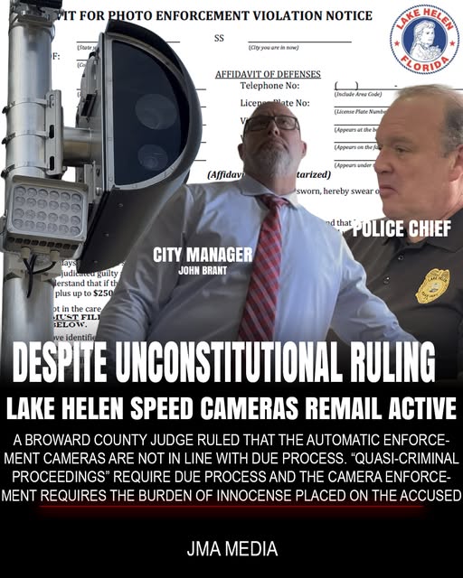 John Brant, City Administrator of Lake Helen, Florida stated that the cameras will be used DESPITE the unconstitutional ruling.