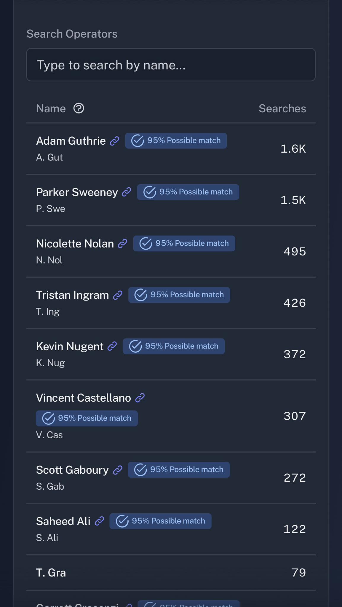 Most officers appear to average roughly 300–400 searches per year. That’s consistent across the list and aligns with what you would expect for routine patrol work, investigations, BOLOs, and legitimate law-enforcement purposes.